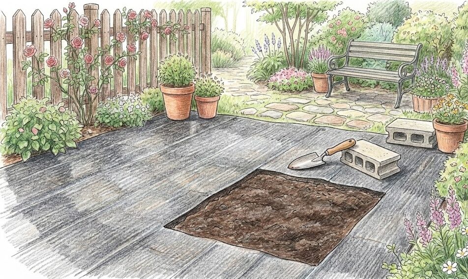 まず「土間コンクリート」ですが、これは業者に依頼する必要があり、ポンプ車やミキサー車を手配するため、どうしても高額になります。また、一度固めてしまうと、「やっぱり花壇を作りたい」と思った時にコンクリートを壊す(ハツリ工事)のが非常に大変で、産業廃棄物の処分費もかかります。夏場の照り返しがキツく、庭の温度が上がってしまうのもデメリットですね。